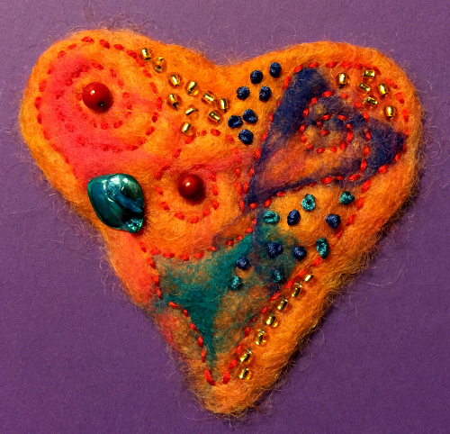 Outside the Comfort Zone (2 1/4" x 3") is made of needle felted Corriedale.